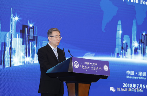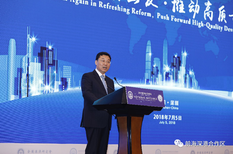 7月5日上午,由深圳市前海管理局、全国港澳研究会主办的“2018前海合作论坛”在深圳开幕,论坛以“改革开放再出发,推动高质量发展”为主题,旨在促进“深港合作”、“深澳合作”。