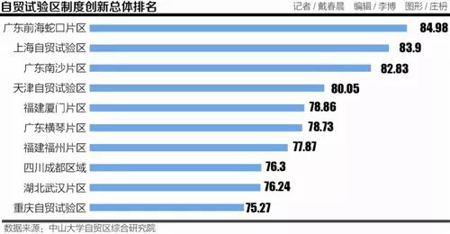 制度创新方面,截至今年五月,前海片区累计推出358项制度创新成果,全国首创或领先达133项,根据中山大学自贸区综合研究院此前发布的《中国自由贸易试验区发展蓝皮书(2017-2018)》暨“2017-2018年度中国自由贸易试验区制度创新指数”,在23个自贸试验(片)区中,2018年度前海蛇口自贸片区以84.98分的制度创新指数超越上海自贸试验区荣登榜首。